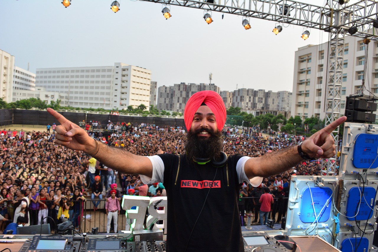 This Sikh boy , Mr.Singh has an unique style of mixing desi tadka music with EDM Beats . He has always believed that the genre shouldn’t be a barrier in music. He not only plays the music but plays the crowd as well.